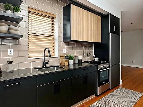 - Modern kitchen with stainless steel appliances