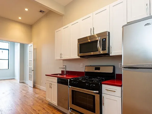 This 3 Bedroom Loft is AWESOME! Super high ceilings, hardwood floors, lots of space, separate kitchen and an awesome roof deck! Rooms are already built out, full kitchen and bathroom in the unit... no need to build anything - move-in ready! Prime location, right by Maria Hernandez Park and too much nearby to name, right between the L and the M.