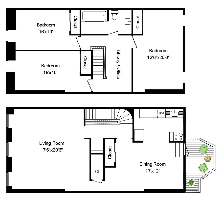 Directly across the street from beautiful Fort Greene Park! Luminous 1,980 Sq. Ft., 3 Bedroom Duplex + Private Deck in stunning 22'wide Brownstone with enviable proportions and unpretentious relaxed style. Three bedrooms (1 large, 2 medium) plus separate library/office area, enormous sunny Living room with 3 windows facing the park, ample windowed Kitchen and full size dining room offer space for a very comfortable life style.