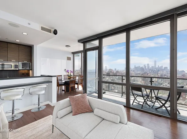 Dreamy outdoor terrace commanding spectacular views of the West Village and the Hudson River. This 2 bed, 2 bath fabulous condo is available for rent August 1st. With a 24 hour door person there is also a laundry room, garage underneath the building and live-in Super.