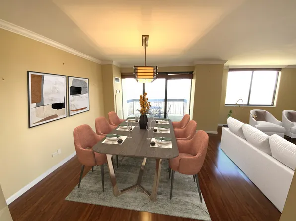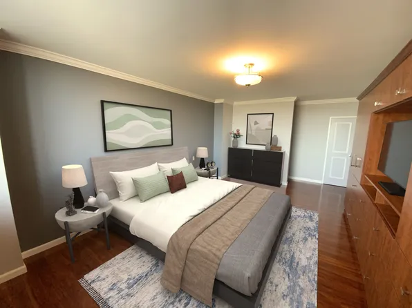 Wake up to stunning water views in this beautifully renovated 2-bedroom, 2-bath home in the pet-friendly Americana building at the Towers at Water’s Edge. Originally a 3-bedroom, this thoughtfully redesigned layout offers expanded living and dining areas—perfect for modern living and effortless entertaining.