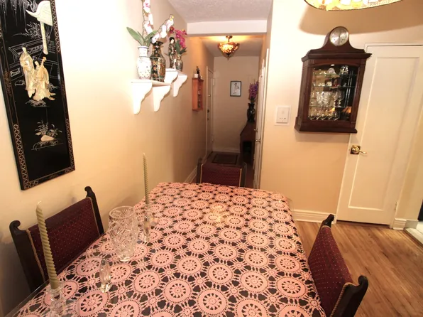 Old Mill Basin...Immaculate 2-bedroom, 1-bath corner lower unit in the sought-after Fillmore Gardens Cooperative. This beautifully maintained 850 sq ft home features wood-look engineered laminate flooring throughout and a renovated kitchen with rich mahogany cabinetry, stainless-steel appliances, a custom built-in dining table for two, and a portable washing machine.