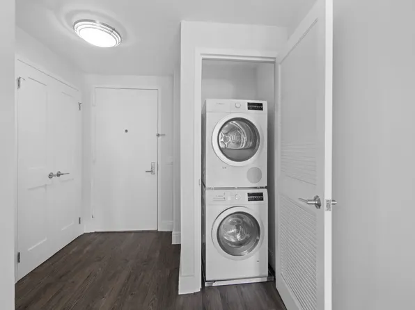 The apartment boasts high ceilings, wood floors, and tons of natural light and abundance of closet space.