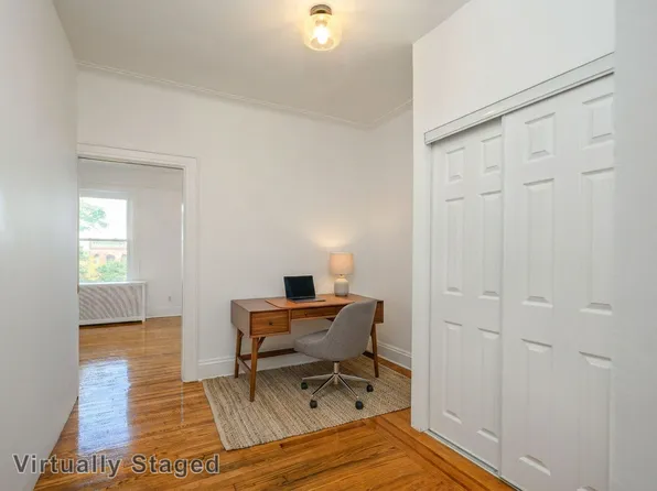 Back on the market! 1200 sq. ft 2 bed/2 bath has it all!! Walk-in to your oversized living space with a real, wood burning fireplace. Just in time for fireplace season! There are massive windows to overlook tree-lined Cheever street. Hardwood floors throughout! Kitchen contains SS appliances including built-in microwave and dishwasher! Two bedrooms that could easily fit a queen sized bed with closets.