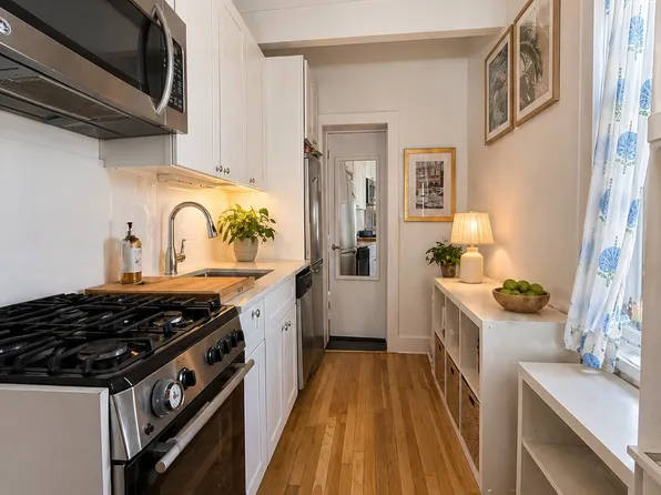 This spacious apartment features a large, windowed kitchen with ample counter space—perfect for cooking and entertaining and all stainless steel appliances, including a dishwasher.