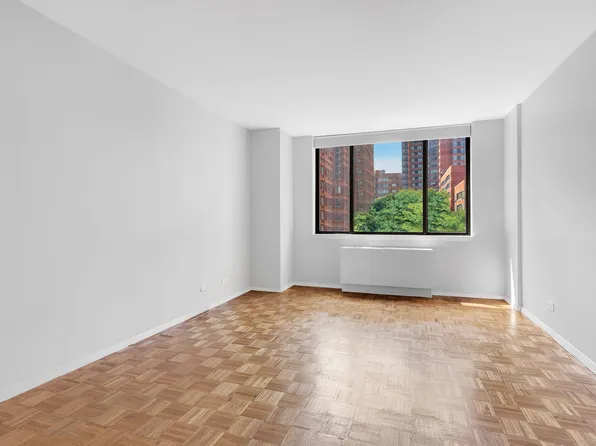 The upper-floor L Line at 185 East 85th Street is a northeast-facing two-bedroom with a half-bath spanning 1,125 square feet — and from the higher floors, the views are exceptional. Select units feature parquet floors, light quartz countertops, and stainless steel appliances. In-unit washer/dryer throughout.