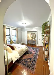 Lovely and updated classic Ridgewood railroad! Features a very spacious kitchen with great counter and cabinet space and stainless steel appliances. There are lovely hardwood floors throughout, nice archway details, a large bedroom and bonus office room, two closets, and a fully renovated bathroom. In an excellent location in the heart of Ridgewood and a short walk to the L and M trains, shopping, and restaurants.