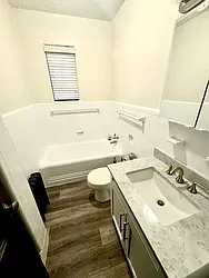 - Full bathroom with clean, modern finishes