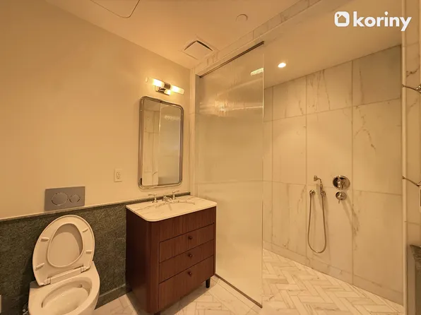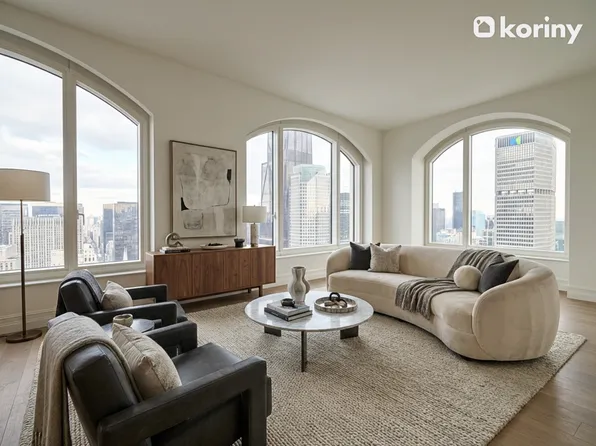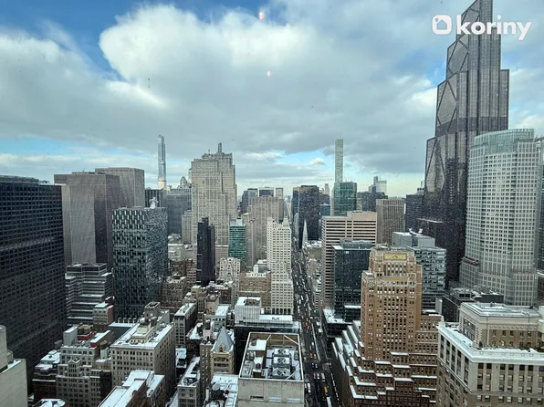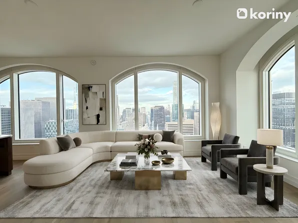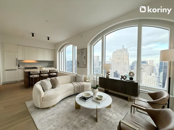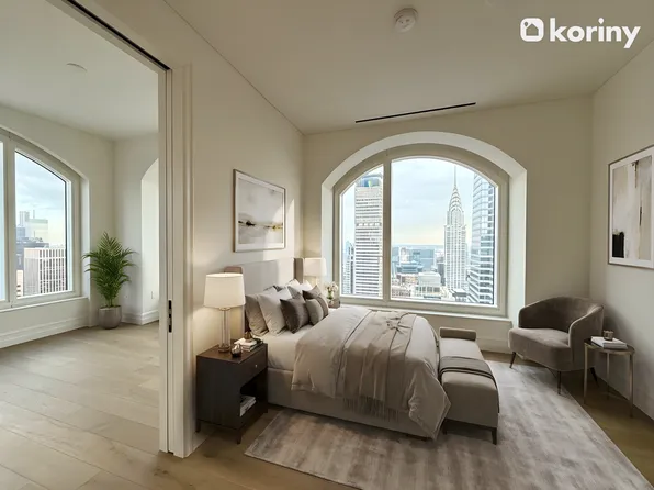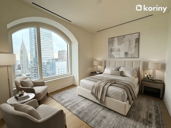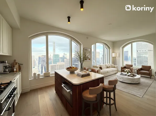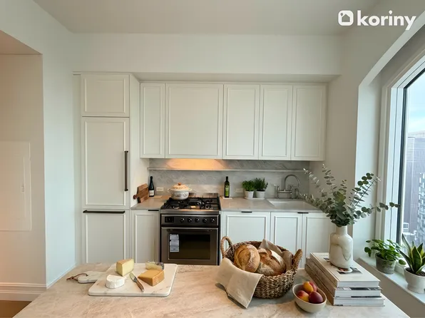 Apartment 18B is a premier corner 1-bedroom, 1-bathroom layout, offering a generous, thoughtfully designed living space, a 244-square-foot private terrace, a gracious entrance foyer, 9-foot ceilings, and oversized windows with views onto 55th Street that fill the home with natural light. The sleek, modern kitchen is equipped with custom Italian cabinetry and Cambria quartz countertops.