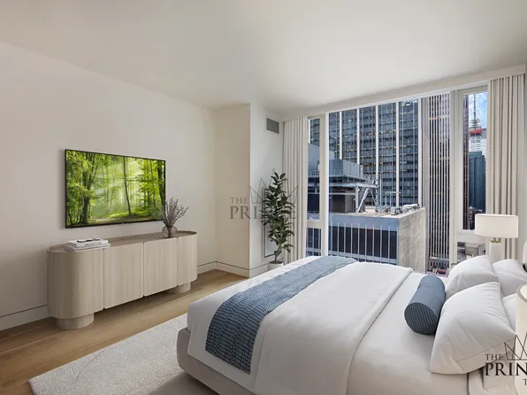 Apartment 8C is a spacious corner 2-bedroom, 2-bathroom residence with North and East exposures, offering a thoughtfully designed living space. Highlights include a separate entry foyer, 9-foot ceilings, and oversized windows that fill the home with natural light. The generously sized open-concept kitchen features a sleek breakfast bar, custom Italian cabinetry, and Cambria quartz countertops and an abundance of storage.