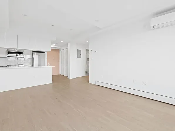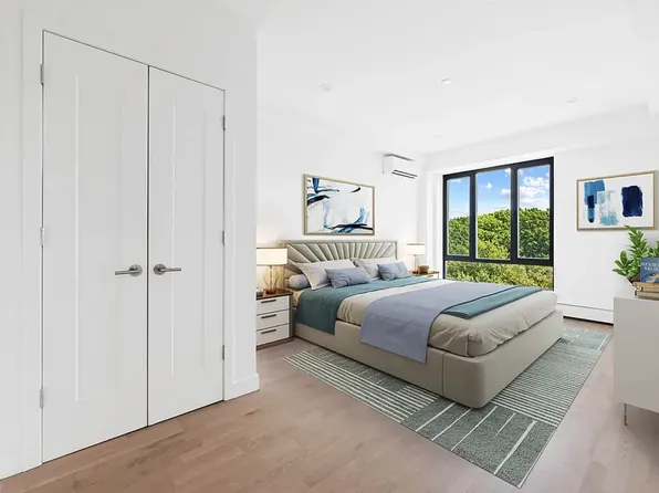 This luxury one bedroom features air conditioning units, stainless steel appliances including private outdoor space, dishwasher, hardwood floors, plenty of closet space, high ceilings, large windows, and video intercom.