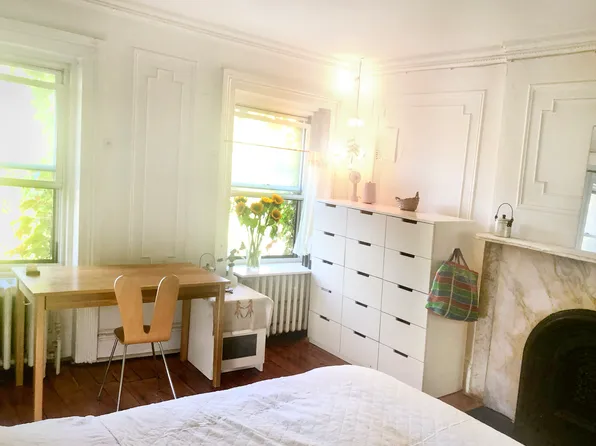 Located on the garden level of a brownstone on a quiet, tree-lined street in Park Slope, this one bedroom apartment is sun-lit from the windows in the front, with a spacious, open living-dining area, a decorative fireplace, in unit washer/dryer, and hardwood floors throughout.