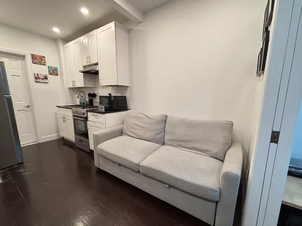 Newly renovated kitchen with stainless steel appliances,mw, beautiful hardwood floors, original exposed brick wall, full bathroom.