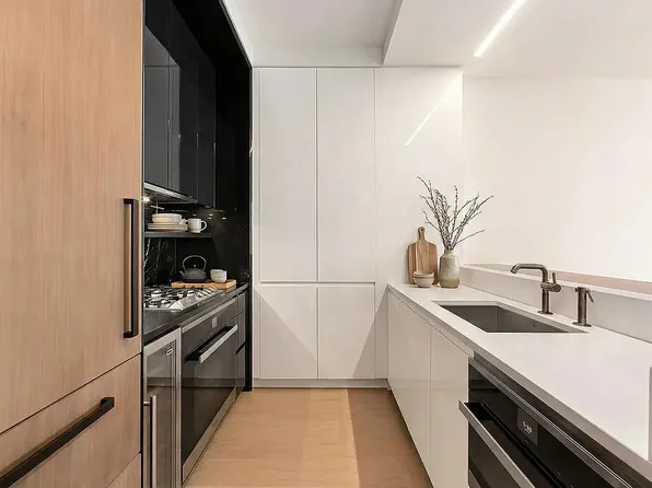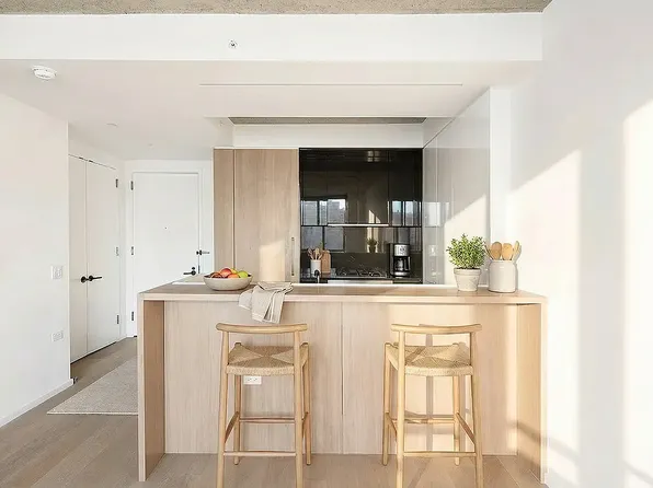 A stunning Lower East Side condo saturated with natural light, this 1-bedroom, 1-bathroom home is a seamless blend of contemporary functionality and industrial chic. Features of this 758 sq. ft. apartment include designer- selected wide plank white oak flooring, unique concrete ceilings, oversized casement windows with western exposure, warm color tones and textures, high- end fixtures and finishes, and a convenient in-home washer/dryer.