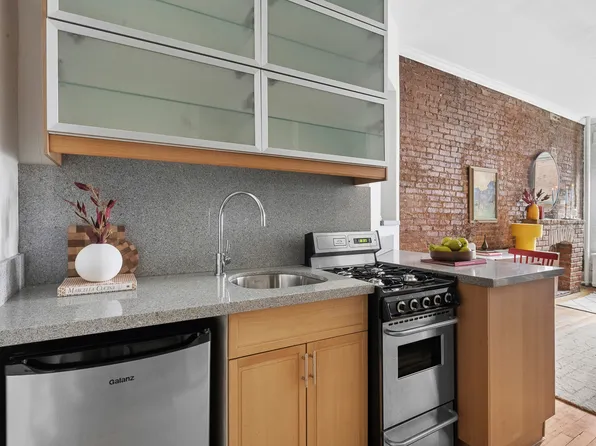 Welcome to 2 Grove Street #5B, a bright, inviting studio tucked away on one of the West Village’s most picturesque, tree-lined streets. Located in a classic brick-clad prewar building, this thoughtfully updated residence is filled with natural sunlight throughout. The renovated, windowed kitchen features sleek stainless steel appliances, a timeless subway tile backsplash, and crisp white cabinetry that enhances the home’s clean, modern appeal.