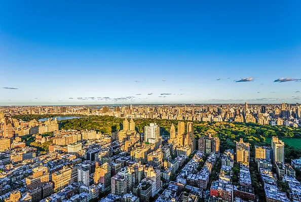 PH2 at 200 Amsterdam offers an elegant, modern plan where every room within offers dazzling views and a 116’ terrace that runs along the entire eastern perimeter of the 49th floor. From the private elevator vestibule, the double doors open directly into a large Foyer overlooking Central Park. The Foyer leads to a 30’4” x 22’6” Living Room with East, North, and West exposures and views well into the surrounding environs. From the Dining Room, floor to ceiling windows frame cinematic views of Central Park and the Manhattan skyline. The airy, eat-in-kitchen gives way to magnificent sunsets over the Hudson River with innovative sliding glass panels that allow for option to have an open or closed kitchen. Within the Kitchen, a Calacatta marble island provides additional seating for four, abundant work space and storage. State of the art appliances include a Sub-Zero refrigerator, freezer and wine chiller, a 48” Wolf Dual Fuel Range, a Miele speed oven, warming drawer and two Miele dishwashers, espresso machine and a dedicated wet bar. Above the range, a striking slab of marble ingeniously conceals an externally vented hood creating an ideal balance of beauty and function. Custom cabinetry is finished in rift White Oak with satin nickel hardware. Two powder rooms and a study are also located on this level. The upper level of the duplex is accessed via the grand staircase or private elevator. The 30’4” x 15’7” Primary Bedroom Suite occupies the North wing of the 50th floor and offers incredible views of Central Park, the Upper West Side, the Hudson River and the George Washington Bridge. The spacious en-suite bath’s cool palette epitomizes serenity and features a Calacatta Cielo feature wall, white marble and lacquer vanity with double sinks, Iceberg marble floor with radiant heating, a walk-in steam shower with marble bench and a freestanding Badeloft soaking tub. The separate water closet contains a high efficiency Toto toilet, polished nickel sink and bath fittings by Fantini, and the Jonathan Browning wall sconces add elegant, well-considered touches. Spacious closets and a midnight bar complete the suite. The South wing of the 50th floor contains 3 additional bedrooms, each with en-suite bath and a laundry room.