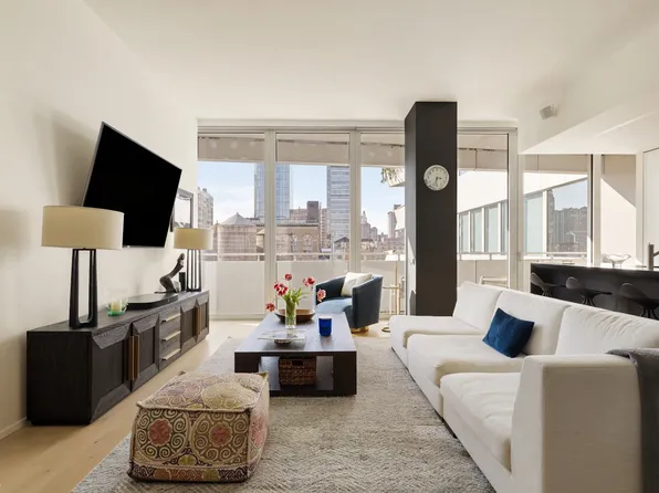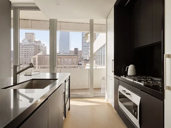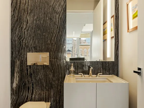 Residence 9D at 200 East 21st Street is a stunning 1,464 square foot 2-bedroom, 2.5-bath sun-drenched corner home with striking views and beautiful light streaming in from exposures north, east, & south. Thoughtfully proportioned rooms and spaces feature over 8' tall bronze windows and 7" wide plank oak flooring finished in a sophisticated custom smoked oil stain, while grand entry and interior doors feature Valli & Valli hardware throughout.