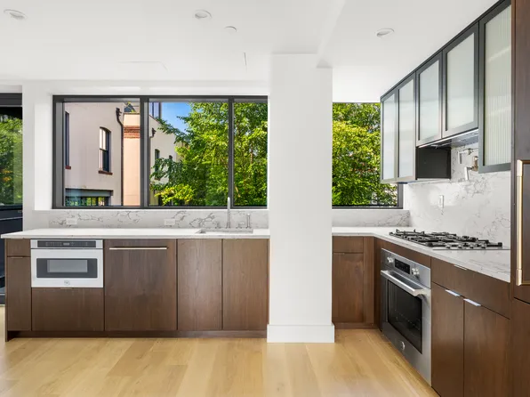 This 921 square foot one-bedroom in the heart of Carroll Gardens stands out for its open views and oversized windows throughout that fill the home with natural sunlight.