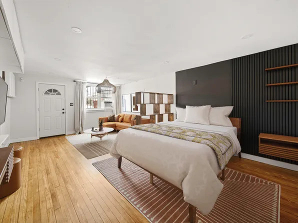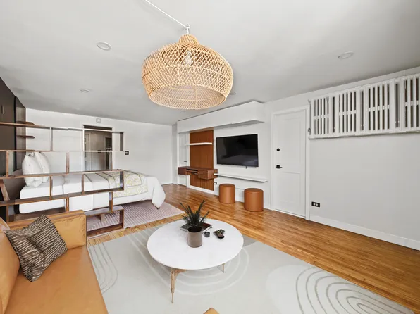 This generously sized pre-war studio offers timeless character, excellent proportions, and a flexible layout that easily accommodates separate living and sleeping areas. High ceilings and solid hardwood floors create an airy feel, while the thoughtful layout allows for distinct zones without sacrificing openness.