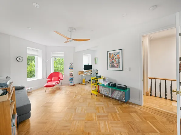 Upon entry, you're welcomed into a gracious parlor level with a grand living room, a flexible parlor room that can serve as a den or formal dining room, and a rear bedroom with an en suite bath.