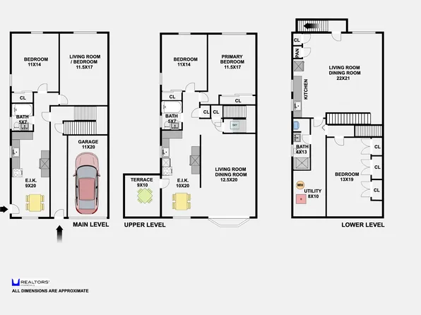 This rarely available 22-foot-wide legal three-family brick home offers over 3,500 sq. ft. of living space, multiple private outdoor areas, and the everyday convenience of a private driveway and large garage—a major advantage in Ditmars.