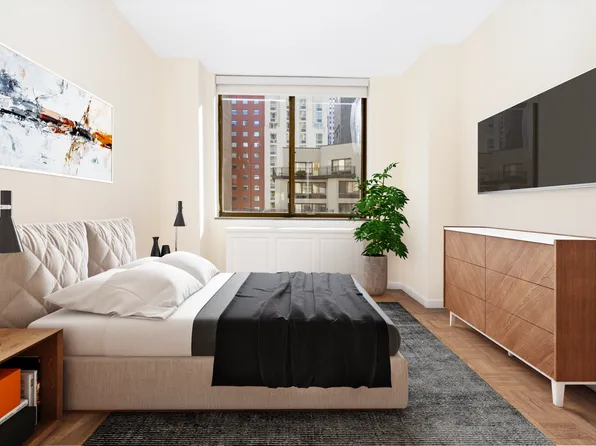 211 E 51st Street - Luxurious 1 bed/ 1 bath in a stylish boutique condo. Generous with quality and layout from the 4-inch white oak flooring to the chefâs open kitchen that includes Calacatta marble slab countertops and top-of-the-line stainless steel appliances, no details were spared. The gorgeous bathroom includes luminescent blue-gray clay tile, hand-made Italian marble floors, and custom-made vanities and medicine cabinets.