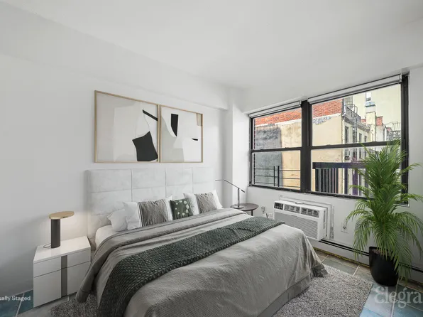 For immediate move-in, No Board Approval! Tucked off Third Avenue, this boutique, elevator, rental is East Village’s inspiration for value. Merely four units a floor, your corner home faces south, waking to gracious morning light all year around. Double wide closets, with storage above, generously line your bedroom where a queen bed comfortably fits, with room for nightstands and a desk.