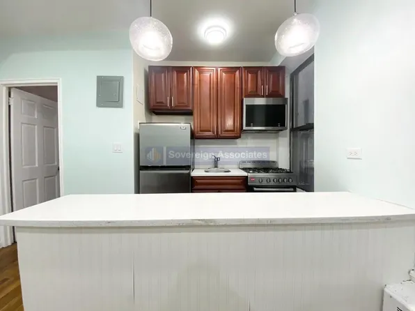 1BR with king sized bedroom and closets, in an elevator building at express subway stop. The apartment gets light from the southern exposure and accentuates the high ceilings and parquet floors. The open kitchen has new cabinets and a microwave. Heat and hot water are included in the rent. On site super, package room and pet friendly.