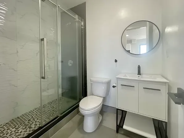 The apartment offers two spacious queen-sized bedrooms along with one full bathroom on the upper level and an additional half bath on the lower level. The layout feels open and bright, with a large living and dining area that gets great natural light throughout the day.