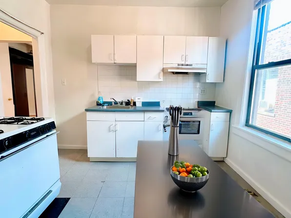This apartment features an eat in kitchen with plenty of cabinets, a renovated window bathroom with standing shower, a long living room perfect for entertaining, and a king size bedroom with a large closet.