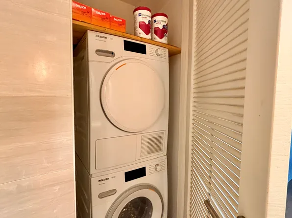 ‐Washer dryer and laundry area.