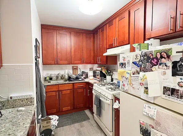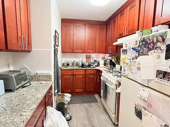 Located on the third floor (walk up), the unit features a Queen-size bedroom and a separate kitchen (with a marble countertop and stainless steel appliances). Plenty of storage space (three closets) and natural light is provided.