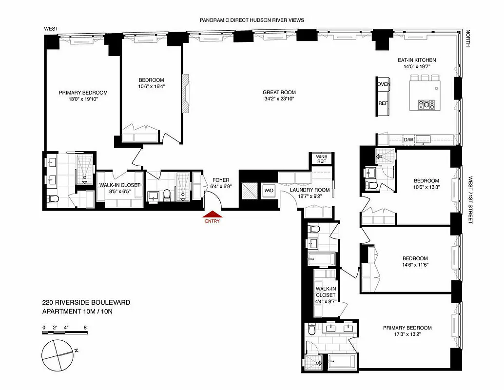 Welcome home to this gracious & spacious 5-star 5-bedroom home with striking panoramic west-facing views of the Hudson River framed by multiple oversize windows.