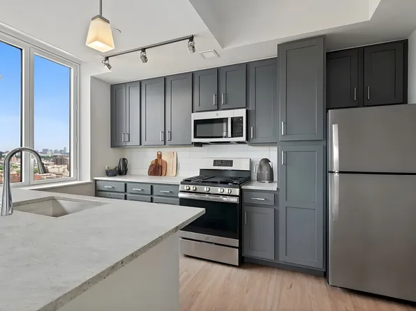 This beautiful, newly built 1-bedroom apartment features an in-unit washer and dryer, dishwasher, central air and heating, and a private balcony.
