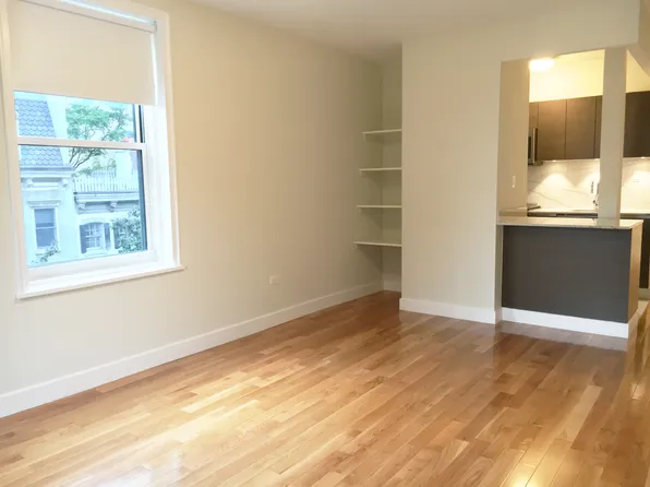 This south-facing corner studio unit with over-sized windows is perched above the neighboring townhouse buildings. It doesn’t face the street, which makes it one of the most quiet unit lines in the building that maintain all day natural light. You can view the Freedom Tower, sunset light to the West and the seasonal tree tops from the window.