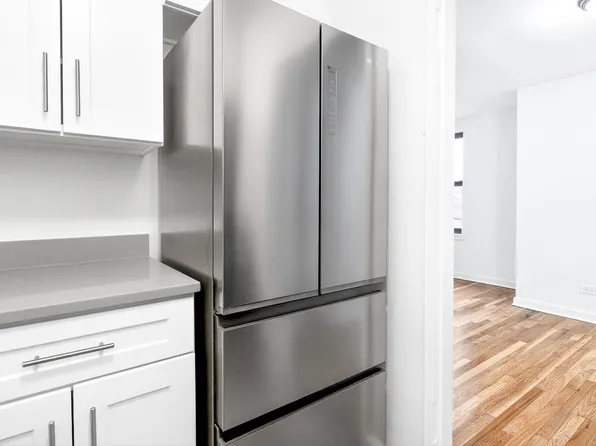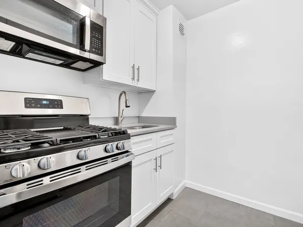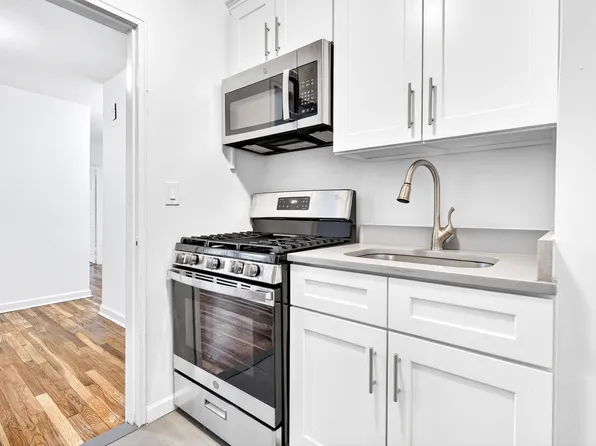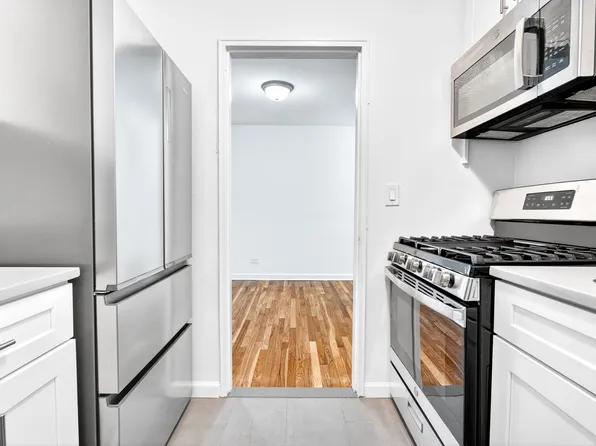Bright and skillfully updated Junior 1-Bedroom on one of the most coveted blocks in the Bronx. Junior 4 (JR4) layout allows for versatile usage of space: it can be used as a spacious 1-Bedroom or a 2-Bedroom with the dining area repurposed for a second bedroom. The kitchen includes cherry wood-stained cabinets, a full-sized window, and a functional fridge. A renovated bathroom adds to the minimalist style of the apartment.