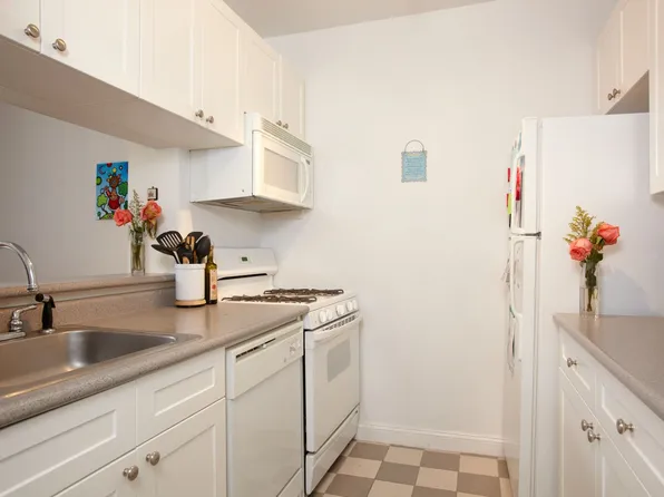 This bright corner home enjoys both southern and eastern exposures, with a full row of windows that flood the space with natural light.