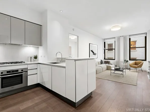 Wake up to soft morning light in this elegant, east-facing one-bedroom at 225 Rector Place. Residence 8S blends modern efficiency with classic New York style, featuring an open kitchen, warm oak flooring, and expansive city views.