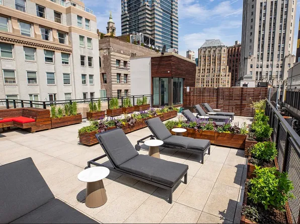 Residents enjoy a full suite of amenities, including a 40-foot indoor pool, a two-story fitness center, and a furnished roof deck ideal for entertaining.