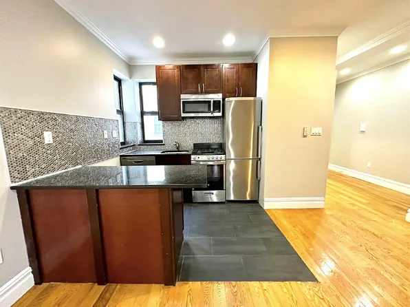 The limestone eight-unit condominium prewar building was recently renovated and maintains gorgeous pre-war details, like hardwood floors and high ceilings, The kitchen has granite countertops, stainless appliances and lots of storage.