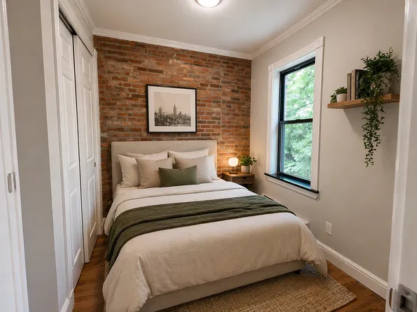 This renovated 2-bedroom, 1-bathroom residence delivers the kind of character and charm that modern construction simply cannot replicate. Original exposed brick walls set a warm, dramatic backdrop throughout, while sun-drenched large windows flood every room with natural light.