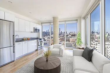 A HVAC rental building that houses studio through three-bedroom apartments, many with terraces. Each apartment features Bosch kitchen appliances and Blomberg refrigerators, Double rodded closets for extra storage, white oak floors, and floor to ceiling double paned windows