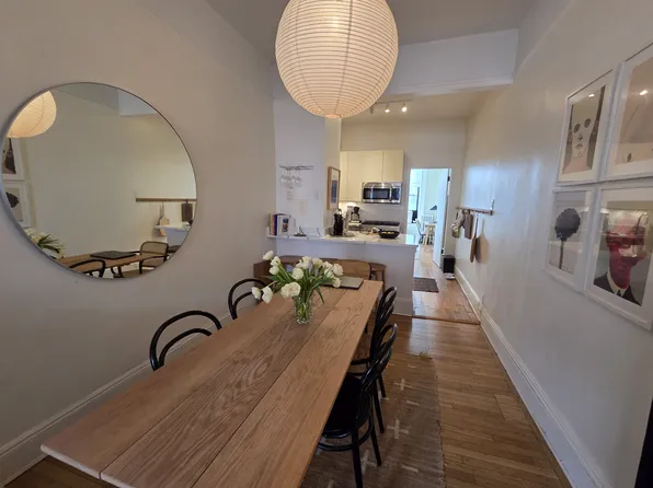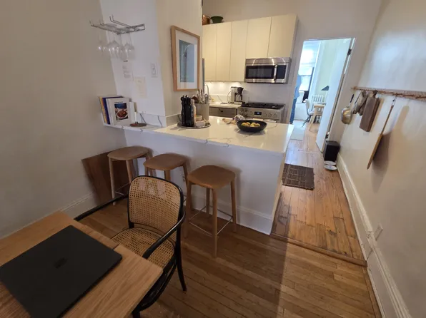 Designer garden floor through! Gorgeous garden apartment- beautifully renovated by professional designer. Eat in kitchen with stainless steel appliances and custom countertops & cabinetry. French doors, exposed brick wall. Beautiful bathroom with frameless glass enclosure. Washer/Dryer-Private Patio overlooking the shared beautifully landscaped garden. No pets or smoking please