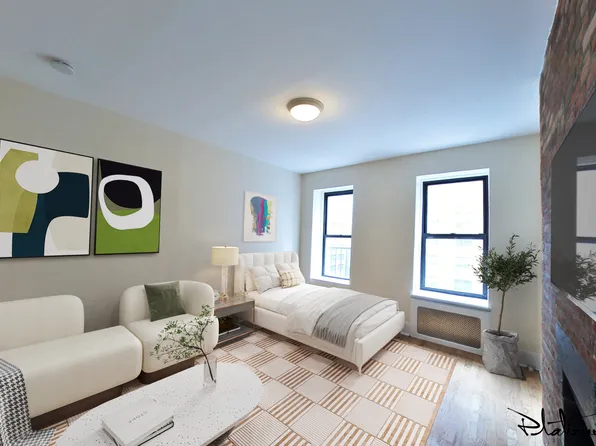 This renovated studio at 230 East 83rd Street features a bright, welcoming layout highlighted by charming exposed brick and polished hardwood floors. The apartment offers a distinct, separate kitchen space that creates a natural flow throughout the home. Large windows allow for plenty of natural light, and a generous closet provides ample storage for a streamlined living experience.