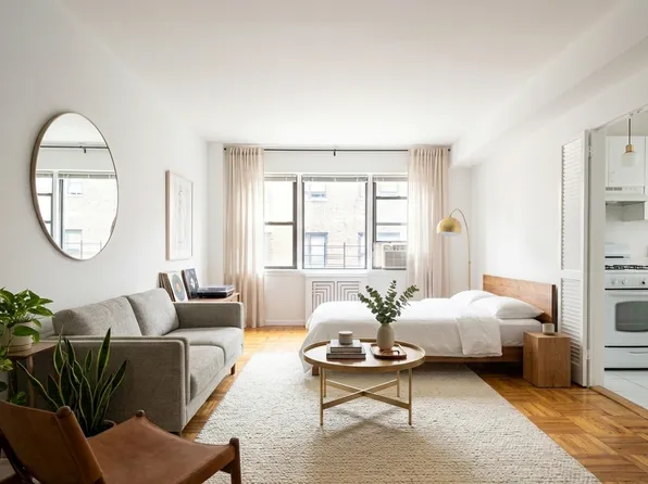 Compact studio in a well-maintained elevator building in a prime Midtown East location. The standout feature is a private deck, spacious enough to accommodate outdoor furniture. Steps from dining and shopping, one block from the 6 train and two blocks from the E and M lines.