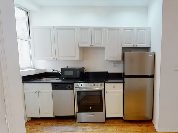 This charming and spacious apartment features a bright living room with room for a dining area, a queen-sized bedroom with a large walk-in closet, and a generous pass-through kitchen with full-size appliances, including a dishwasher, granite like countertops, and a breakfast bar.