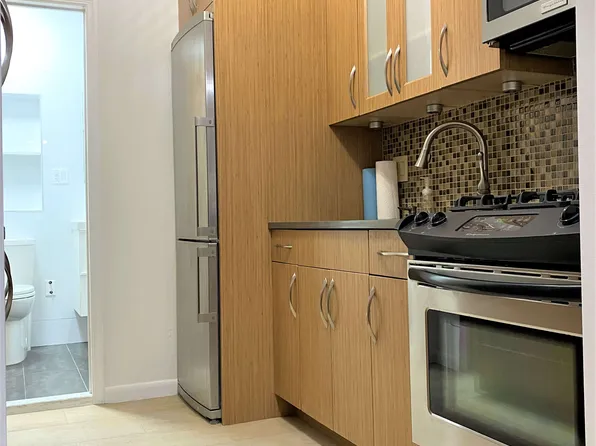 Incredible value for this bright high-floor 1 Bedroom / 1 Bath overlooking a quiet rear garden. The open layout maximizes usable space, and the large Ceasar stone kitchen countertop can accommodate bar seating. The kitchen features a dishwasher, built-in microwave, and stainless steel appliances. Included in the living room are an in-wall air conditioner and a separate heating unit.