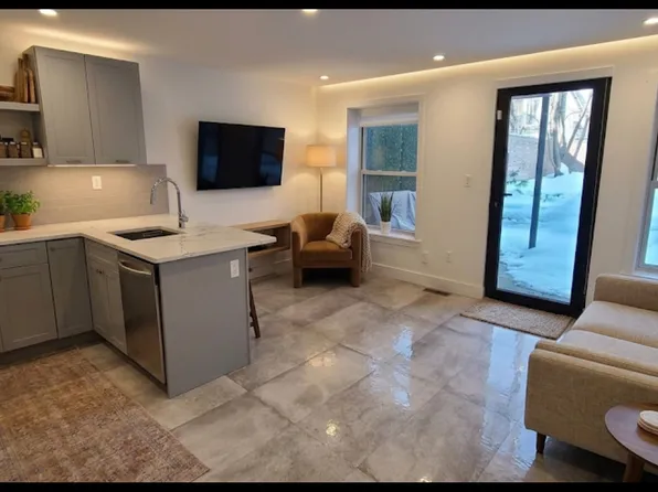 1 BR / 1BA on the top floor (2nd floor, one flight up) of our brick townhouse. We are two designers (and two kids) and we live in the duplex downstairs. The block is beautiful and wide, so lots of sunlight in the south-facing front and enough darkness in the north-facing back where the bedroom is. We have a great tight-knit community and it's an awesome place to live.