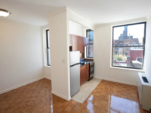 Large studio that can fit both bed and couch and separate kitchen that feature hardwood floors and ample closet space.