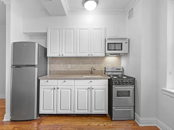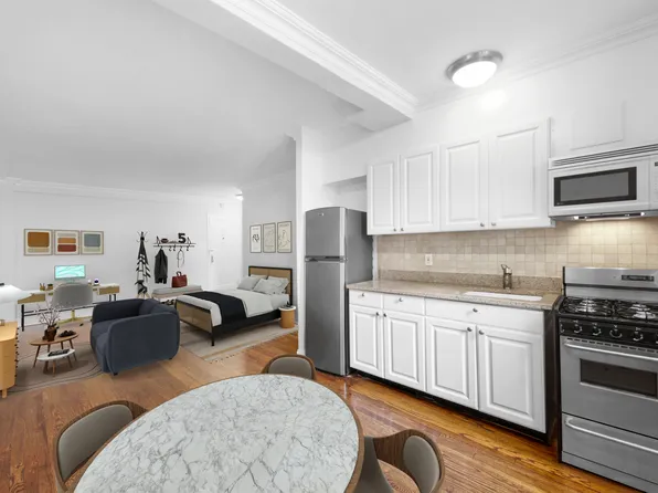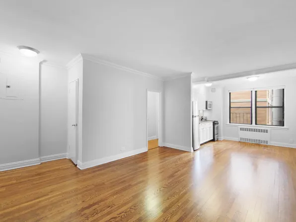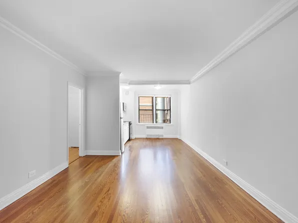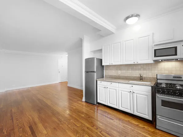 $1,000 Reduced Security Deposit for Qualified Applicants Corner studio, open kitchen and a breakfast island. Light-filled space features hardwood floors, abundance of closets, and high ceilings. The unit has stainless steel appliances and bookshelf was removed.